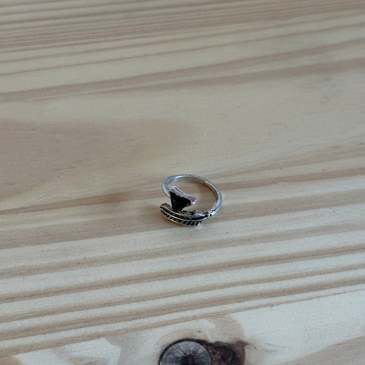1980's Feathered Arrow Ring with Black Gem - Size 5.5